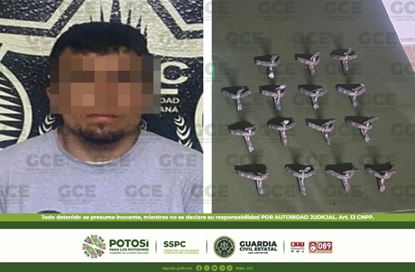 Dentro de la unidad, que estaba en las calles de Sor Juana Inés de la Cruz y San Miguel, de la colonia Azteca, en el municipio de Rioverde, había una caja de plástico que contenía 15 artefactos metálicos conocidos en forma de estrella.