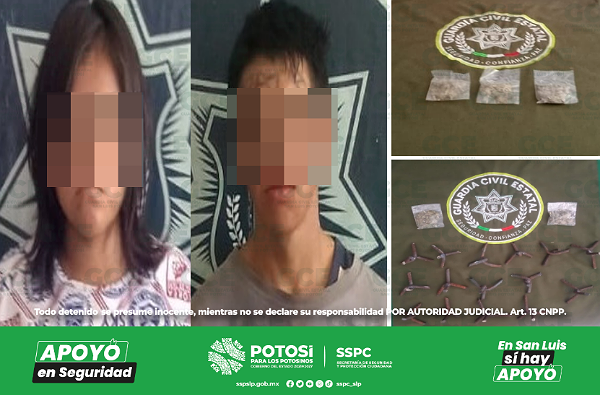 Las fuerzas del orden le marcaron el alto al guía y al entrevistarse con José “N” de 25 años y Zully “N” de 21 años de edad, les aseguraron cinco bolsas de marihuana preparadas para su venta y distribución de manera individual y 15 artefactos metálicos conocidos como “poncha llantas”.