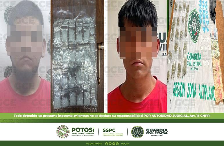 S.L.P.- En el marco de los operativos enfocados a prevenir y combatir frontalmente el narcomenudeo en las cuatro regiones del territorio potosino, oficiales de la Guardia Civil Estatal (GCE) aseguraron más de 80 dosis de droga en las 24 últimas horas; tanto en Matehuala como en la capital potosina fueron detenidos tres objetivos criminales presumiblemente vinculados con la venta de narcóticos y su distribución.