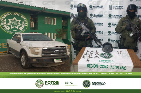 En el marco de la estrategia integral de seguridad desplegada en las cuatro regiones del territorio potosino, agentes de la Guardia Civil Estatal, ubicaron una camioneta abandonada en cuyo interior había “poncha llantas” y cartuchos útiles.