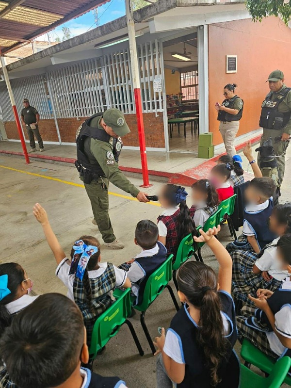 En esta semana, oficiales de la Guardia Civil Estatal (GCE) visitaron a 230 niñas y niños de dos instituciones educativas, como parte de la campaña permanente para la sensibilización temprana a la infancia sobre la cultura de la prevención y el autocuidado.