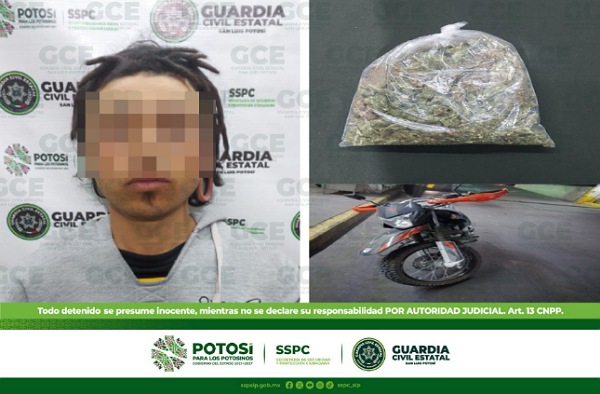 Mediante una inspección a su persona, los uniformados le aseguraron una bolsa con una hierba verde y seca, con las características físicas de la marihuana, cabe señalar que el presunto anteriormente ha sido identificado como probable informante de la delincuencia, por lo anterior se procedió a la detención de Cristian “N” de 29 años de edad así como la bolsa con 150 gramos de marihuana.