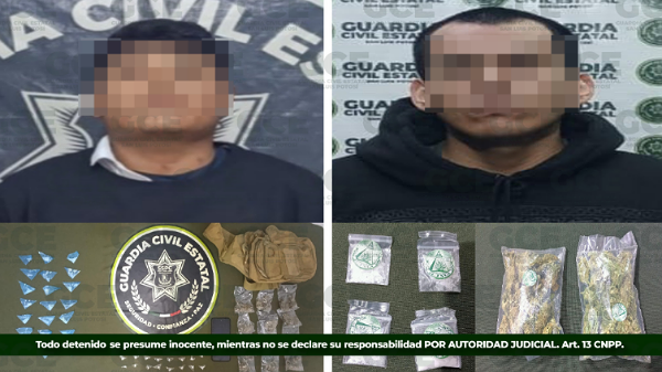 De igual manera, el aseguramiento de enervantes en los municipios de Villa de Zaragoza y Matehuala, alejando del mercado miles de pesos en sustancias nocivas para la salud de las y los potosinos. Una de las detenciones tuvo lugar en el municipio de Santa María del Río, tras los operativos entre GCE y Ejército mexicano, en donde aseguraron a José “N” de 24 años, con dos bolsas con marihuana y cuatro de “cristal”. Por su parte, en el municipio de Ciudad Valles, Hermenegildo “N” de 20 años, quedó detenido tras asegurarle 23 dosis de “crack”, 21 de “cristal”, 12 de marihuana y un teléfono celular.