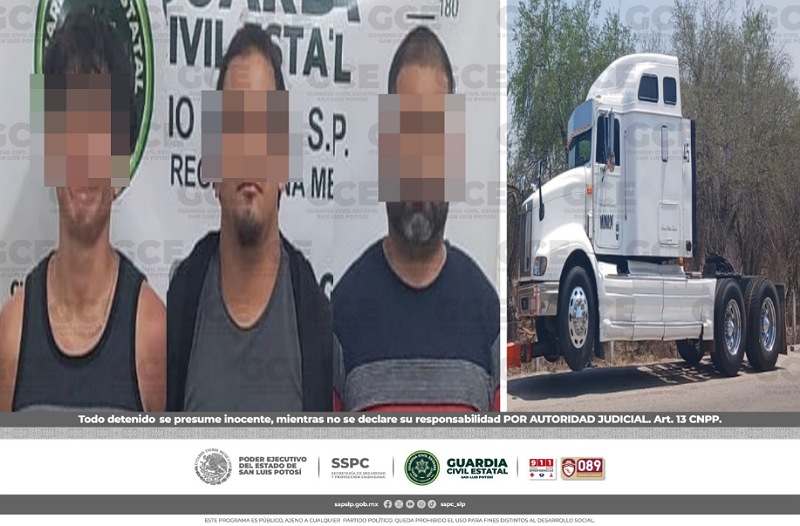 Por lo anterior se detuvo a Víctor “N” y José “N”, ambos de 23 años de edad, así como a Joel “N” de 33 años, asegurándoles una unidad de carga, tipo tractocamión, color blanco, modelo 1991. Los presuntos son considerados como una probable banda criminal, dedicada al robo de transportes de carga en esta región, por ello se procedió a su puesta a disposición ante la Fiscalía General del Estado, autoridad competente en definir su situación legal.