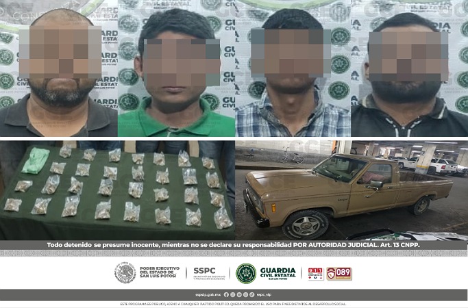 Guadalcázar, S.L.P.- La Secretaría de Seguridad y Protección Ciudadana del Estado de San Luis Potosí, informa que derivado de los hechos ocurridos la mañana de este lunes en la comunidad de “Charco Cercado”, en el Municipio de Guadalcázar y en el marco de una relevante y oportuna acción operativa que incluyó sobrevuelos en la zona, se pudo desmantelar una célula delictiva generadora de violencia y presuntamente dedicada a actividades ilícitas como el robo y la venta de droga.