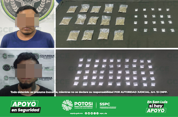 San Luis Potosí, S.L.P.- Un supuesto “punto” de venta de droga fue desmantelado por agentes de la Guardia Civil Estatal (GCE); derivado de esta acción además se detuvo a dos probables vendedores de droga en diferentes puntos de la zona metropolitana.