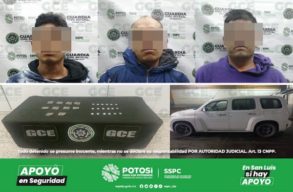 S.L.P.- Labores de inteligencia desarrolladas por la Guardia Civil Estatal (GCE) para el combate al narcomenudeo, permitieron desmantelar un supuesto punto de venta de droga en el municipio de Soledad de Graciano Sánchez, así como la captura de tres objetivos criminales; además, en el municipio de Tamazunchale, dos probables narcomenudistas también fueron detenidos.