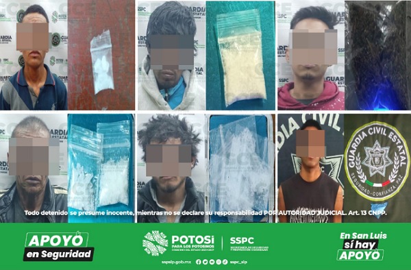 S.L.P.- En diferentes acciones contundentes en el combate al narcomenudeo, 13 personas fueron detenidas por agentes de la Guardia Civil Estatal (GCE) luego de que fueran sorprendidos en probable posesión de diversos estupefacientes.