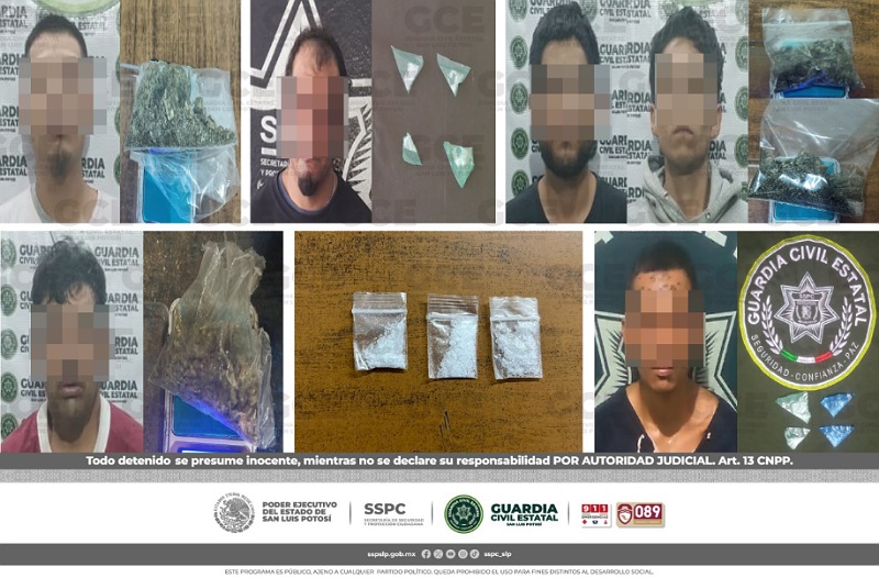 S.L.P.- Por probables delitos contra la salud, en su modalidad de posesión de enervantes, 14 personas resultaron detenidas por agentes de la Guardia Civil Estatal (GCE).