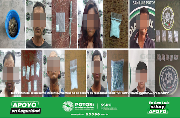 S.L.P.- Agentes de Guardia Civil Estatal (GCE) detuvieron a 15 personas en diferentes acciones operativas, luego de asegurarles dosis de estupefacientes en su poder, con ello se evitó la probable comisión de actos antisociales y/o delictivos.
