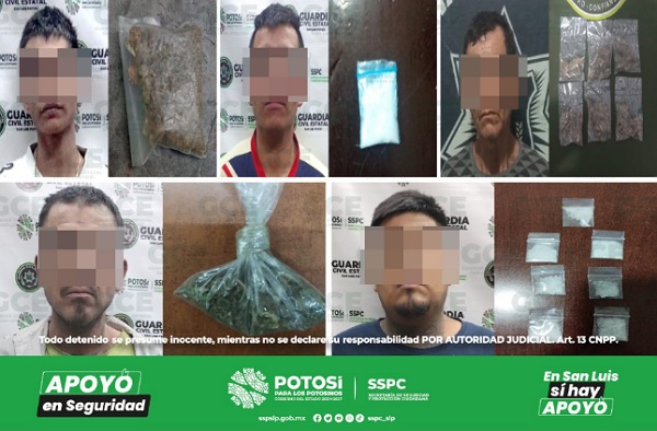 S.L.P.- Derivado de la aplicación del Plan Integral de Seguridad en los 58 municipios del estado, agentes de la Guardia Civil Estatal detuvieron a 17 personas por probables delitos contra la salud, en su modalidad de posesión de droga, tras asegurarles 30 dosis de enervantes.