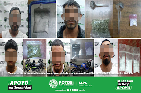 S.L.P.- Oficiales de la Guardia Civil Estatal (GCE) detuvieron a 17 personas después de que fueran sorprendidas en presunta posesión de estupefacientes; los hechos fueron gracias a los patrullajes de seguridad emitidos por las cuatro regiones del estado potosino.