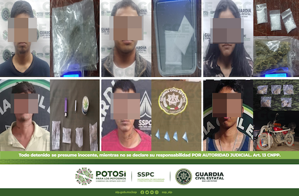 A su vez, en la colonia San Francisco, del municipio de Soledad de Graciano Sánchez, Aldair de 18 años fue detenido con tres dosis de marihuana; en la colonia Rinconada del Palmar, Halad de 23 años quedó detenido después de que la GCE le asegurara una dosis de marihuana; en la zona centro del municipio de Villa de Ramos, José de 19 años quedó detenido tras asegurarle 7 dosis de “cristal”, el presunto trató de evadir su responsabilidad legal y ofreció a los elementos estatales 500 pesos en efectivo.