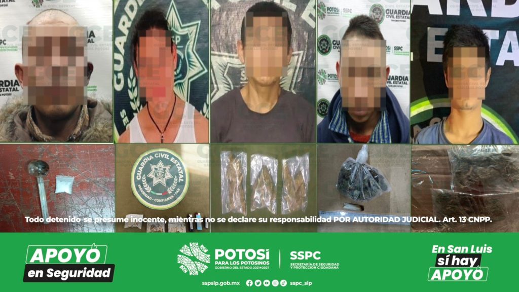 Al interior del Estado, en el municipio de Ciudad Valles, Armando “N” de 33 años de edad, fue asegurado con tres dosis de marihuana; en el municipio de El Naranjo, fue capturado Juan “N” de 19 años, con dos dosis de marihuana; a su vez, en el municipio de Tamazunchale, Macedonio “N” de 18 años, quedó detenido al asegurarle tres dosis de marihuana; en la misma zona, en operativos sobre la localidad El Frijolillo, Alfredo “N” de 44 años, fue detenido con una dosis de marihuana.