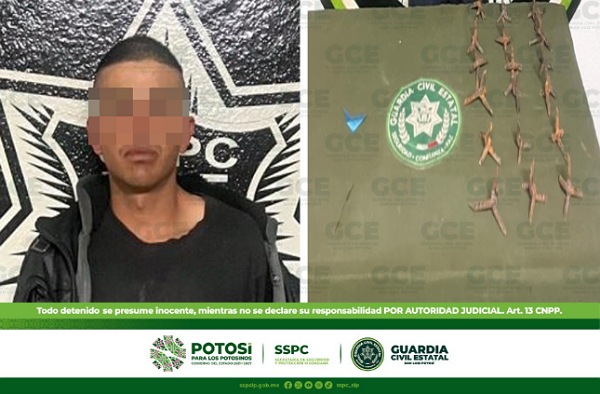 A su vez, en el municipio de Matehuala, Jorge “N” de 30 años, fue asegurado con tres dosis de “cristal”; en la colonia Mitras, José “N” de 29 años, fue asegurado con una bolsa con marihuana; por último, en el municipio de Matehuala, Ángel “N” de 27 años, fue asegurado en el kilómetro 10+100, de la carretera 57, con una dosis de “cristal” y 18 “poncha llantas”.