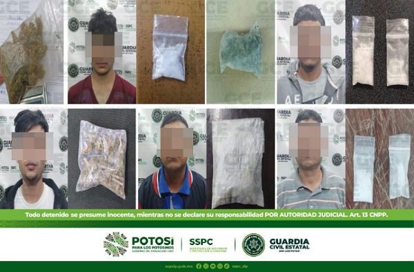 S.L.P.- Trabajos de prevención y disuasión de actos constitutivos de delito, permitieron que oficiales de Guardia Civil Estatal (GCE) detuvieran a 24 personas, por probables delitos contra la salud, en su modalidad de posesión de enervantes.