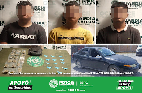 Derivado de operativos implementados por elementos de la Guardia Civil Estatal en el combate frontal contra la delincuencia organizada y el narcomenudeo, se llevó a cabo la detención de Jonathan “N” de 22 años, Ramón “N” de 19 años y Óscar “N” de 24 años en la zona centro del municipio de Cedral.