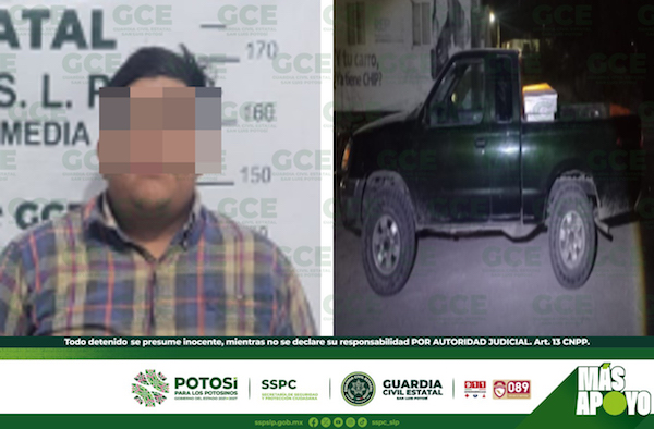 Rioverde, S.L.P.- Agentes de la Guardia Civil Estatal (GCE) detuvieron al tripulante de una camioneta, durante los operativos efectuados en la zona centro de Rioverde, luego de que presuntamente fuera descubierto manejando bajo los influjos del alcohol, lo que ponía en peligro la integridad propia y de terceras personas.