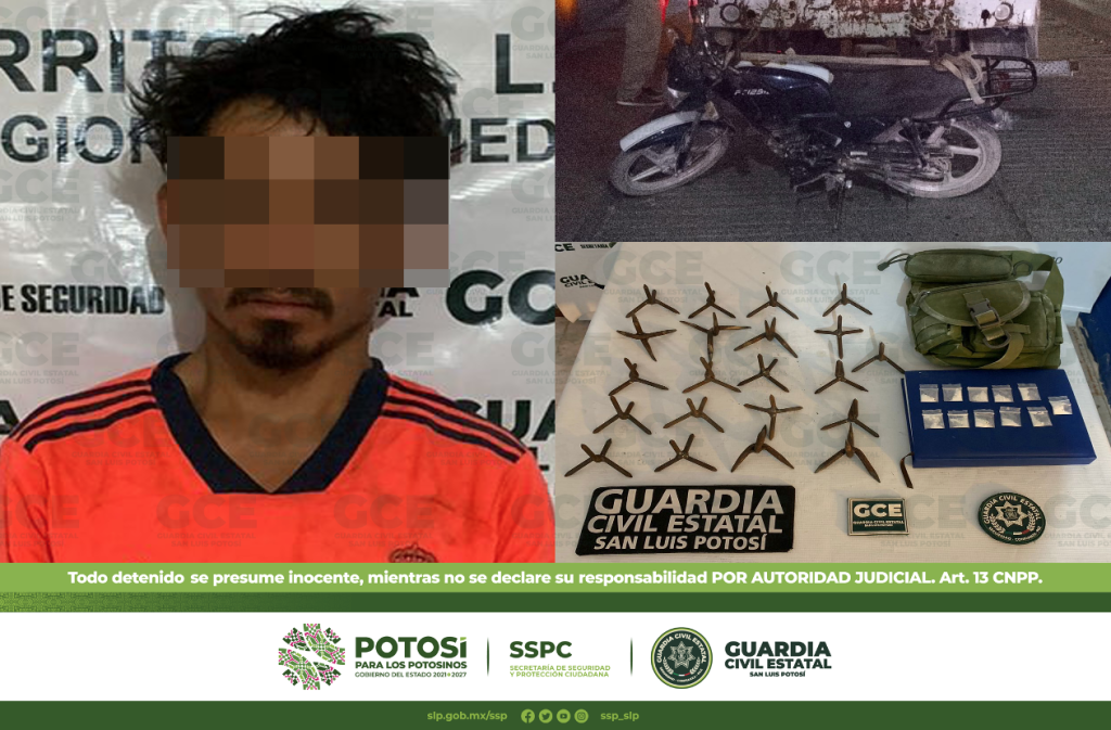 Otro de los hechos tuvo lugar en el municipio de Moctezuma, agentes estatales patrullaban sobre la carretera 63, cuando en la comunidad de El Garabatillo, tuvieron contacto con un joven de 17 años de edad, quien trató de huir de los uniformados, sin embargo, fue abordado sobre el kilómetro 63 de dicha vía.