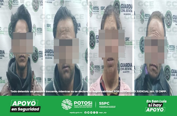 S.L.P.- Alertas ciudadanas atendidas por la Línea de Emergencias 911, permitieron la detención de cuatro personas por presuntamente ingresar a inmuebles particulares, las partes agraviadas indicaron que procederían legalmente en su contra.