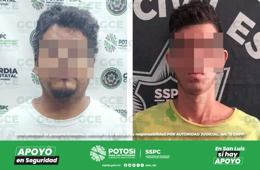 S.L.P.- En el marco de las acciones operativas dispuestas a inhibir cualquier acto de agresión que vulnere el derecho a una vida libre de violencia, policías de la Guardia Civil Estatal (GCE) detuvieron a dos hombres en distintos hechos, después de que las afectadas los denunciaran por el probable delito de violencia familiar.