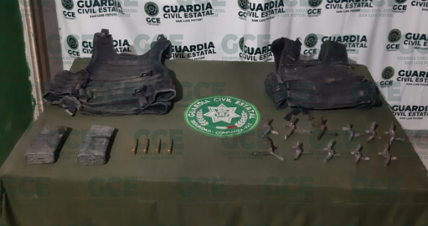 Además se aseguró una camioneta en la que había chalecos tácticos, cartuchos útiles y “poncha llantas”.