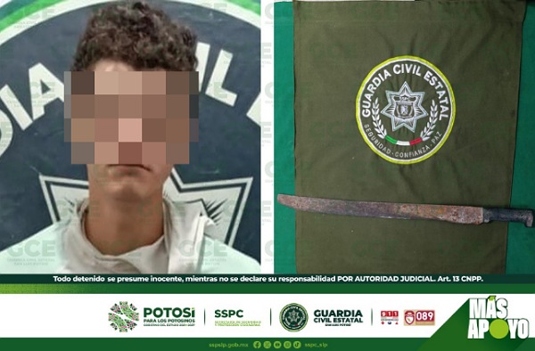 Por lo anterior, se le hizo de conocimiento al detenido el motivo de su arresto y los derechos que legalmente le corresponden, quedando a disposición de la Fiscalía General del Estado, así como el machete del que fue despojado. La Secretaría de Seguridad y Protección Ciudadana del Estado, reitera a la ciudadanía las acciones para garantizar que niñas, adolescentes y mujeres tengan una vida libre de violencia. Se les exhorta a reportar a través de los números de emergencias 911 y de Denuncia Anónima 089 cualquier hecho que atente contra la tranquilidad de la población