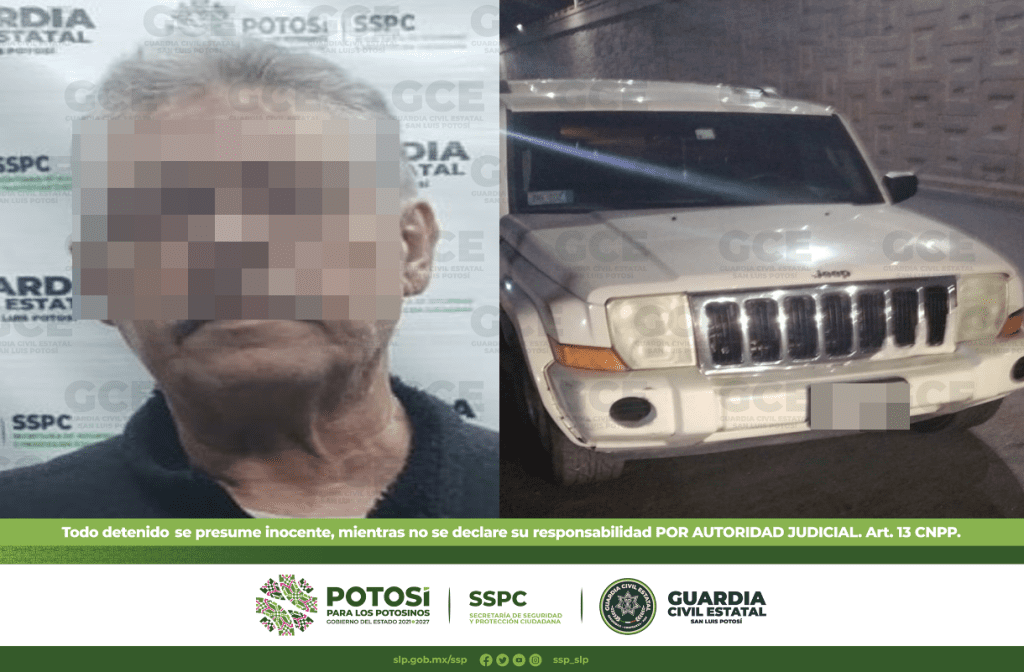 Los hechos ocurrieron en Periférico Norte a la altura de la avenida Del Sauce, los elementos estatales detuvieron a Mario de 68 años de edad, quien tripulaba una camioneta marca Jeep, modelo 2008, color blanco, la cual portaba una matrícula perteneciente a un vehículo marca Chevrolet, modelo 2009.