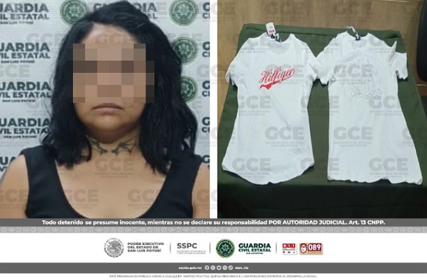 San Luis Potosí, S.L.P.- Mediante una alerta emitida por personal de una tienda departamental, una mujer resultó detenida por el probable delito de robo, tras ser sorprendida con mercancía valuada en más de 2 mil pesos en efectivo.