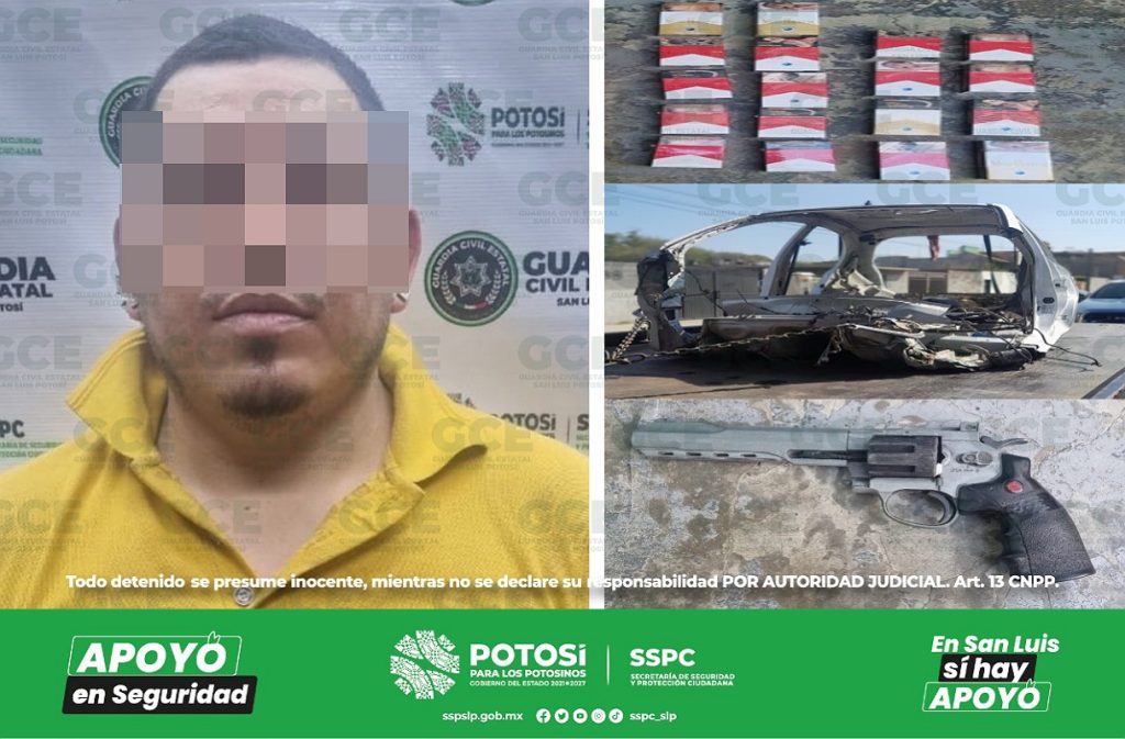 Soledad de Graciano Sánchez, S.L.P.- En seguimiento a los trabajos preventivos y a una denuncia sobre el robo a una tienda de abarrotes, agentes de la Guardia Civil Estatal (GCE) lograron la detención del probable responsable del hurto; además se le aseguró un vehículo que presumiblemente desvalijaba.