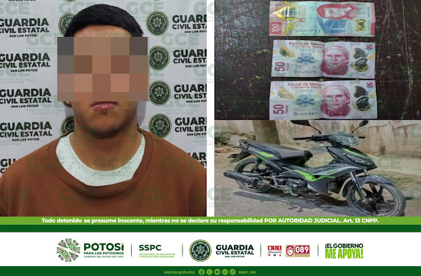 San Luis Potosí, S.L.P.- En un dispositivo de seguridad, policías de la Guardia Civil Estatal (GCE) detuvieron a un hombre, por el probable delito de cohecho, tras intentar ofrecer a los elementos aprehensores dinero, a cambio de evadir su responsabilidad legal.