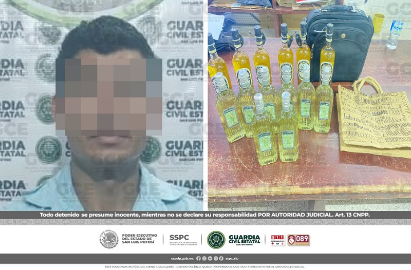 San Luis Potosí, S.L.P.- Mediante la alerta emitida por personal de un supermercado, sobre una persona que fue sorprendida tratando de huir con varias botellas de licor, valuadas en un monto de más de 5 mil pesos, autoridades de la Guardia Civil Estatal detuvieron al presunto responsable.