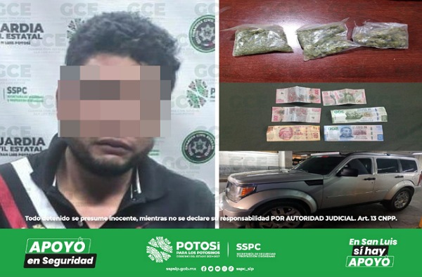 Tras darle alcance e indicar que se detuviera, efectuaron una inspección, dentro de la que aseguraron tres bolsas con marihuana, Sixto “N” de 49 años de edad, intentó evadir su responsabilidad al ofrecer mil 20 pesos en efectivo, para que la GCE lo dejara retirarse. Cabe señalar que al momento de realizar la consulta pertinente a la base de datos de Plataforma México el individuo resultó con diversas detenciones por presuntos delitos como extorsión, tortura, robo, violencia familiar y delitos contra la salud.
