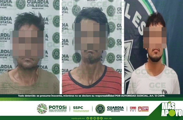 S.L.P.- En diferentes acciones operativas, agentes de la Guardia Civil Estatal (GCE) detuvieron a tres hombres, por el probable delito de violencia familiar. Los hechos fueron en la capital potosina y en el municipio de Ciudad Valles.