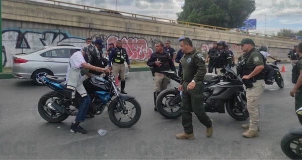 Diecisiete motocicletas que no portaban placas ni permiso para circular sin ellas, fueron puestas a disposición de las autoridades correspondientes, luego de informarles a los conductores de estos vehículos sobre la posible falta en la que incurrían; a su vez, un automotor fue asegurado por encontrarse en estatus irregular.