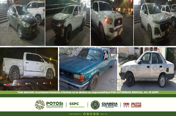 San Luis Potosí, S.L.P.- Agentes de la Guardia Civil Estatal (GCE), recuperaron siete vehículos con reporte de robo en acciones de localización en las cuatro regiones del Estado.