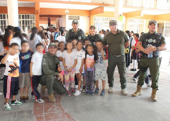 A través de dinámicas interactivas y la presencia de los binomios caninos, los oficiales estuvieron con alumnos del turno vespertino de la escuela primaria «Julián Carrillo» en la colonia El Saucito.