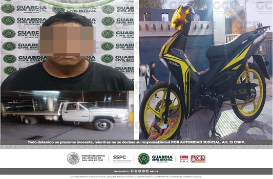 En otro hecho, elementos estatales, como resultado de la fuerza operativa del operativo Cazador, se logró la recuperación de una motocicleta con reporte de robo que se desplazaba en las calles de Iturbide y De la Pedrera, en la zona centro del municipio de Soledad de Graciano Sánchez.