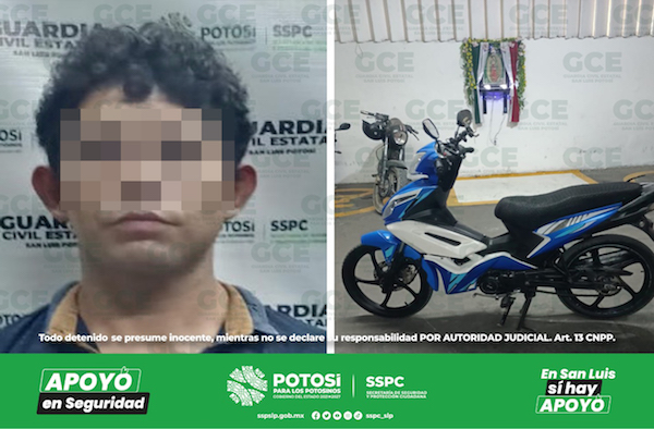 San Luis Potosí, S.L.P.- En diferentes operativos de seguridad efectuados por elementos de la Guardia Civil Estatal (GCE), tres unidades que contaban con reporte de robo fueron aseguradas; además se detuvo a un motociclista a bordo de una de las unidades aseguradas.