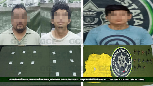 Como parte de las acciones de la Estrategia Integral de Seguridad en las cuatro regiones, la Guardia Civil Estatal (GCE) detuvo a dos personas en la zona centro de la delegación La Pila, mientras que en Ciudad Valles detuvo a un hombre al que le fueron asegurados 13 objetos metálicos conocidos como “ponchallantas”.