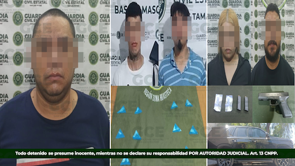 La Guardia Civil Estatal (GCE) detuvo a cinco personas por su probable participación en distintos hechos delictivos, fortaleciendo las acciones para preservar el orden y la paz pública, derivado del trabajo permanente y las labores de inteligencia en las cuatro regiones.
