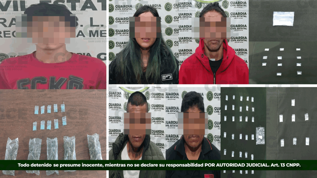En el punto conocido como La Manzana, intersección La Curva, en la colonia La Sauceda, municipio de Villa de Zaragoza, la fuerza operativa de la GCE logró la detención de Juan “N”, de 42 años, y Luis “N”, de 29 años, asegurándoles 40 dosis de “cristal”, así como un vehículo marca Nissan Tsuru, color blanco, modelo 2017.