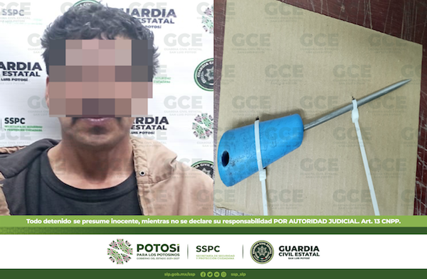 Durante los patrullajes de seguridad emitidos en la colonia San Ángel, dentro de las estrategias policiales del Operativo “Semana Santa Segura 2023”, oficiales de la Guardia Civil Estatal (GCE) detuvieron a un hombre al ser sorprendido deambulando en dicha zona con un arma prohibida.