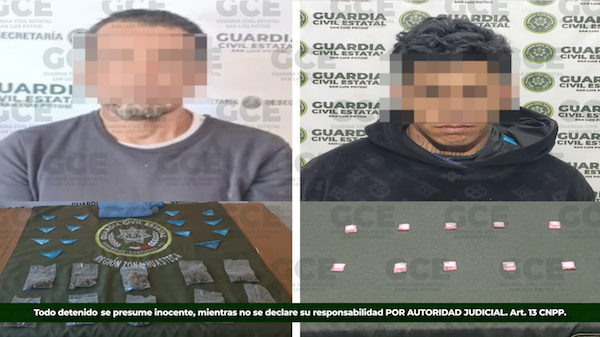 En la zona metropolitana, los oficiales de la GCE detuvieron a Andrés “N” de 22 años de edad, luego de asegurarle 10 dosis de metanfetaminas, resultado de las labores de inteligencia en la zona; mientras que, en el municipio de Tamasopo, agentes estatales informaron la detención de José “N” de 50 años, tras asegurarle 10 bolsas con marihuana y 14 de “cristal”.