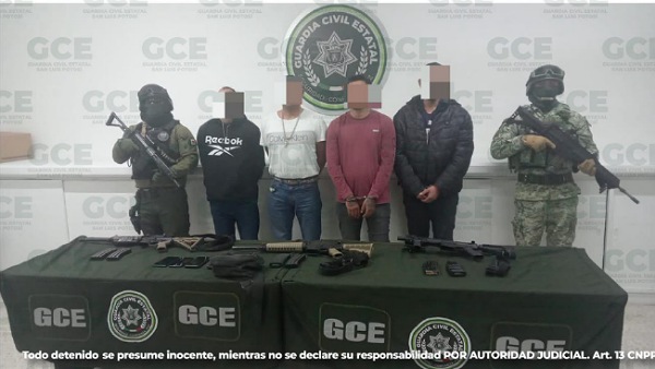 Derivado de la aplicación del Plan Integral de Seguridad en la zona Altiplano, elementos de la Guardia Civil Estatal aseguraron a cuatro hombres con armas de fuego luego de una persecución.