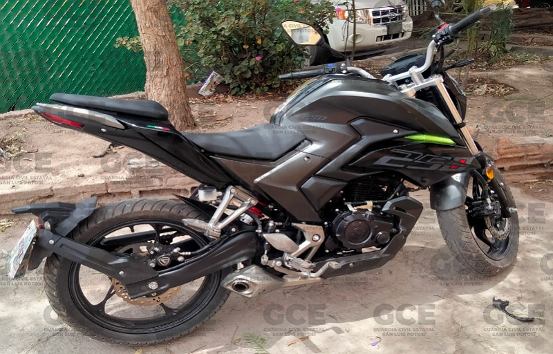 Uno de los hallazgos fue en la colonia El Paseo, elementos de la GCE aseguraron un vehículo marca Chevrolet, tipo Chevy, modelo 1999, color beige, con placas de esta entidad, el cual tenía reporte de robo de la zona centro de la capital potosina; a su vez, en la colonia Julián Carrillo, oficiales de la GCE aseguraron una motocicleta marca Italika, modelo 2024, color negro, la cual tenía reporte de robo del mes de abril del año en curso, en la colonia Industrial. El aseguramiento fue en la colonia Julián Carrillo.