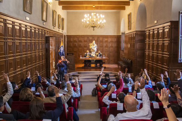 En esta sesión, se contó con la presencia del secretario general de la institución, Mtro. Federico Garza Herrera, así como directoras, directores, consejeras y consejeros, maestros y alumnos de todas las entidades académicas de la UASLP.