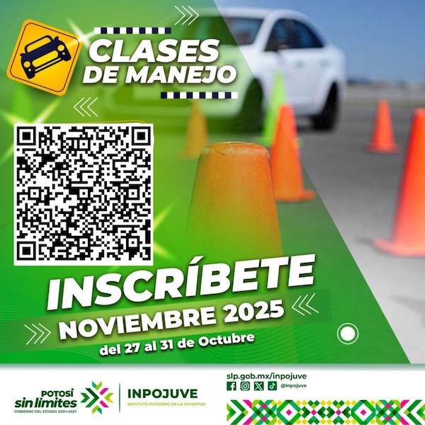 Por instrucción del Gobernador Ricardo Gallardo Cardona, el Instituto Potosino de la Juventud (Inpojuve) mantiene abierta la convocatoria para las clases de manejo del programa “Jóvenes al Volante”, correspondientes al mes de noviembre de 2025. Esta acción tiene como objetivo ofrecer a las y los jóvenes potosinos la oportunidad de fortalecer su educación vial y adquirir habilidades de conducción responsables, dentro de una política de desarrollo juvenil que avanza sin límites.