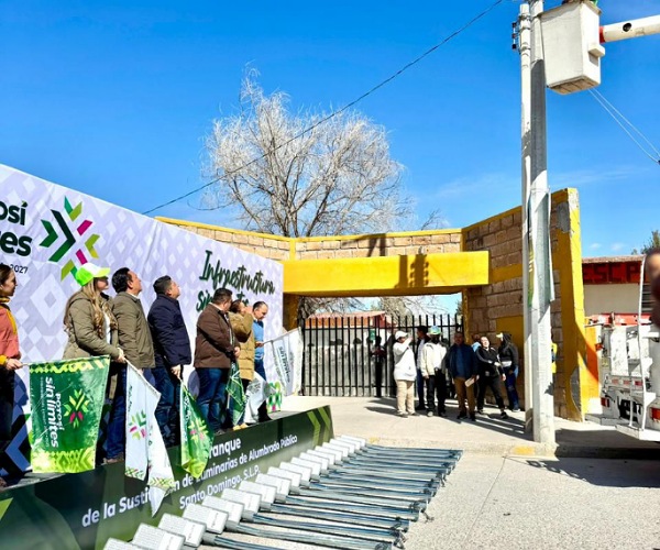 En Santo Domingo, inauguró la carretera de La Congregación al entronque a Charcas, anunció un programa de apoyo al campo para productores de frijol y arrancó la modernización del alumbrado público con mil 200 luminarias LED que beneficiarán a 33 localidades.
