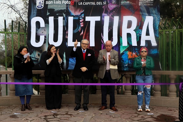 Presentes, Daniel García Álvarez de La Llera, director de Cultura Municipal; Alexandra Daniela Cid González, presidenta de la Comisión de Cultura, Recreación, Deporte y Juventud del Honorable Cabildo; Jorge Andrés López Espinosa, Titular de la Coordinación Municipal de Derechos Humanos del H. Ayuntamiento de San Luis Potosí; Beatriz Arely Mireles de Alba, integrante del Consejo Ciudadano de Cultura Municipal y la artista peruana Cecilia Guerrero.